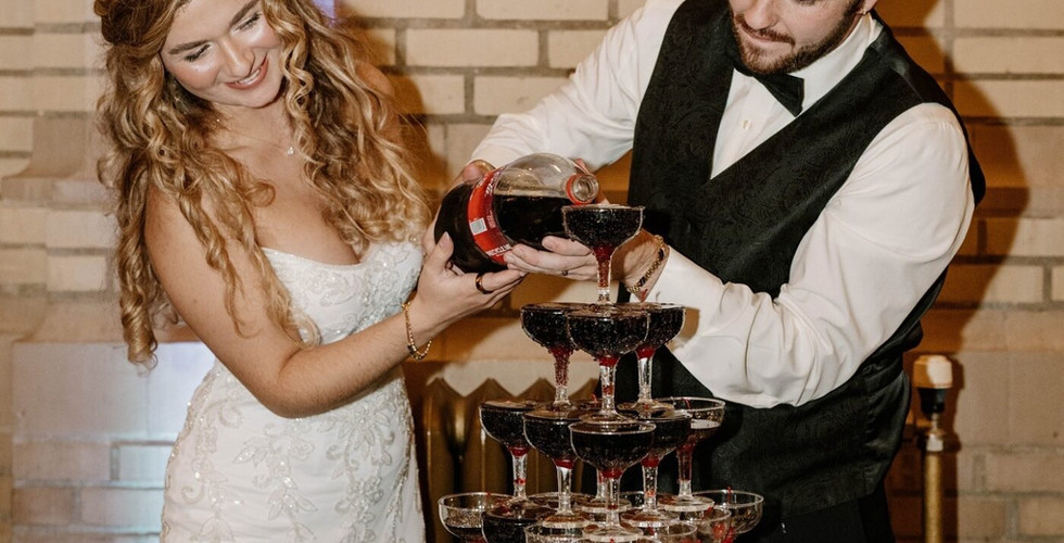 The champagne tower: a memory making moment, a nod to vintage glamour, a statement decor piece. 2026 Couples are taking the classic tradition of the Champagne Tower, and making it truly their own. Adding personality, modernity and a super fun twist, here's how they're making their Weddings truly their own.